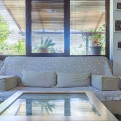 On the main floor there is a bedroom with a double bed, the living room and kitchen as also a full bathroom. There is A/C here too.